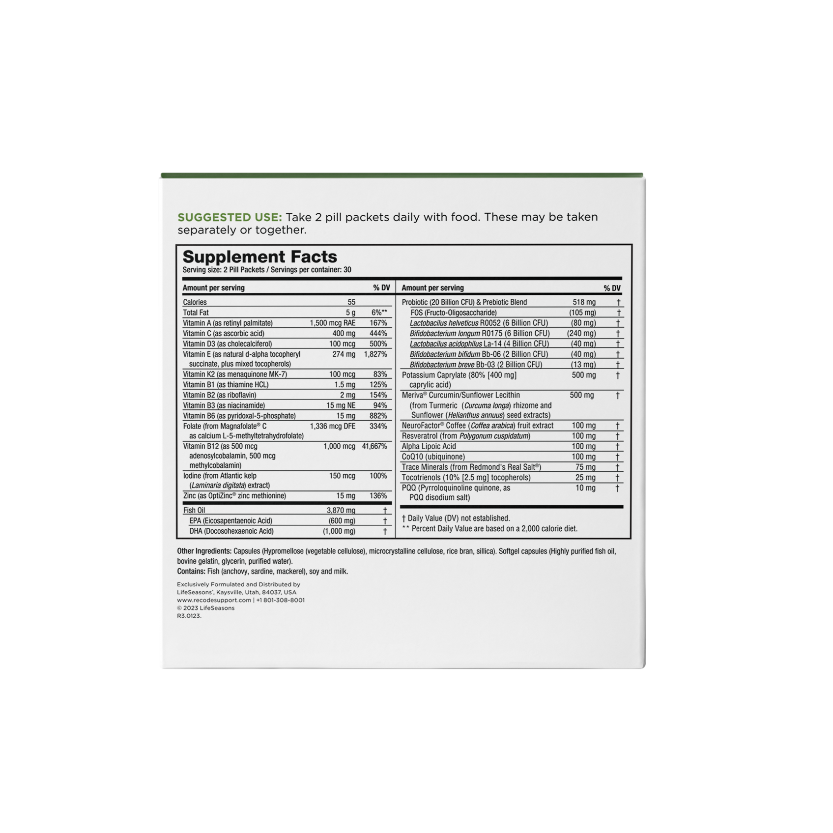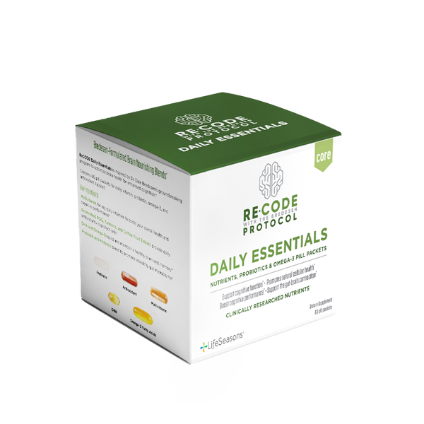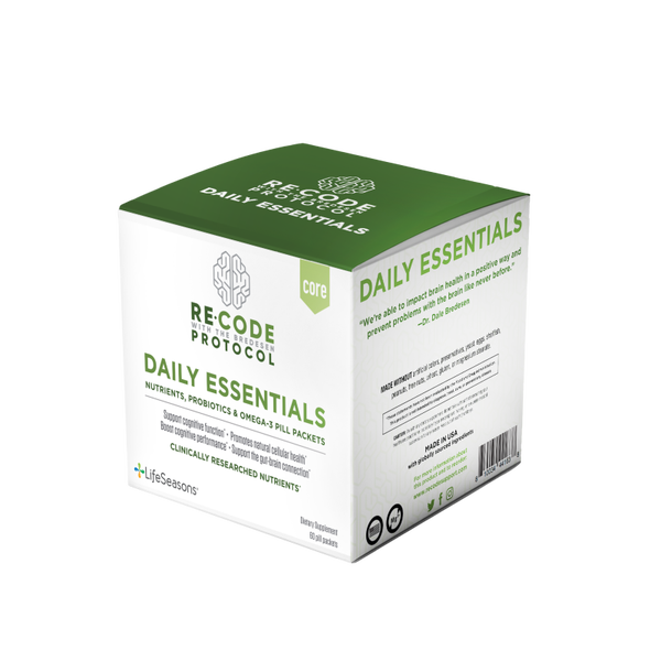 Les radicaux libres sont des déchets cellulaires naturels qui peuvent endommager les cellules et les tissus de l'organisme. Le Dr Bredesen, neurologue de renommée mondiale, s'est associé à Apollo Health Institute pour lutter contre les radicaux libres et vous fournir les nutriments essentiels à votre corps dans les sachets de comprimés Daily Essentials.